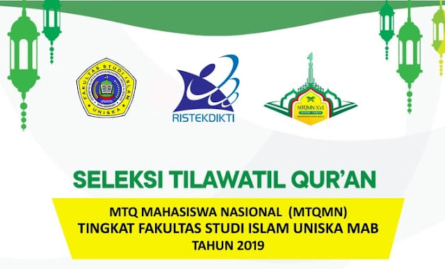 Lomba MTQ Mahasiswa Tingkat Nasional akan diadakan di Banda Aceh pada tahun 2019 ini, guna mengikuti acara ini, UNISKA mengadakan seleksi mahasiswa dari tingkat Fakultas. Menanggapi hal tersebut Fakultas Studi Islam akan mengadakan seleksi yang akan dilaksanakan tanggal 1 Mei 2019.
