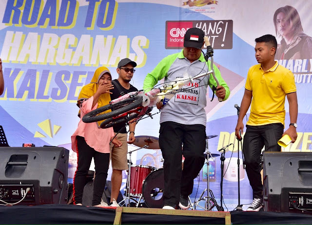| Gubernur Kalsel, H Sahbirin Noor Saat Menyerahkan Doorprise CNN Indonesia Hang Out Sebagai Rangkaian Harganas 2019 di Kalsel |