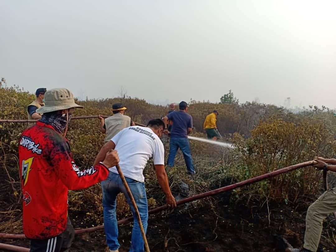 “Bayangkan kebakaran lahan gambut di Tegal Arum Banjarbaru, Tim gabungan bergerak memdamkan api mulai jam 1 siang, baru benar-benar bisa dipadamkan pada pukul 22.00 wita” tulisnya.
