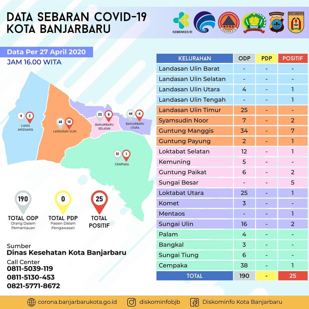 Berikut Sebaran Kasus Positif Virus Corona (Covid-19) di Banjarbaru