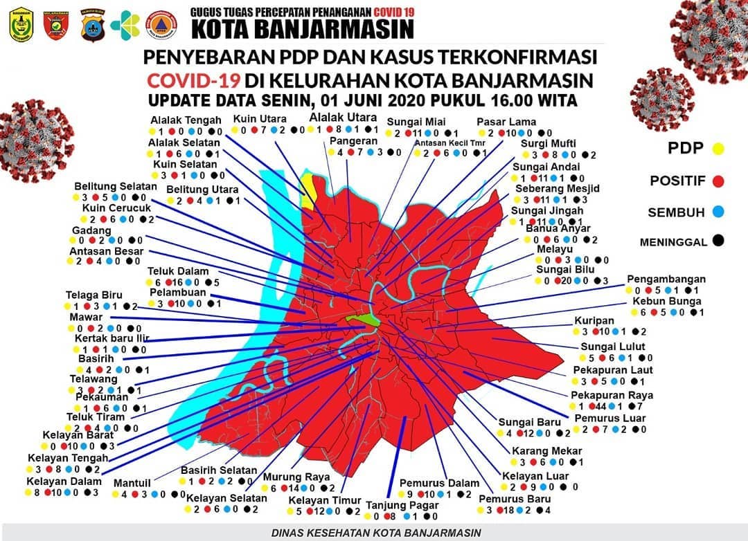 Kasus Covid-19 di Banjarmasin yang terkonfirmasi positif, tersebar hampir di semua Kelurahan di Banjarmasin.