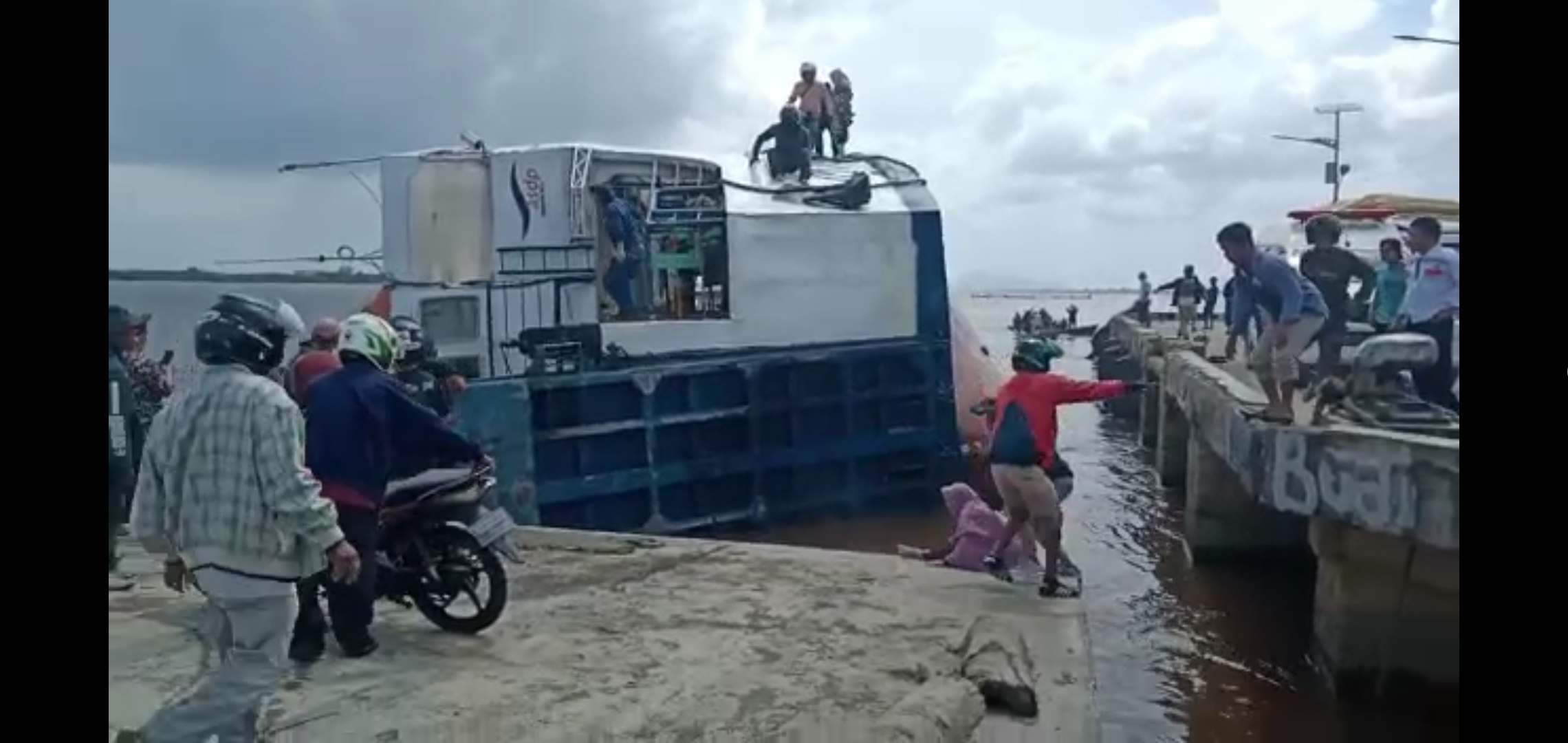 Feri KMP Bili Terbalik di Dermaga Perigi Piai Sambas