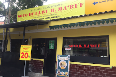 Jakarta selalu terkenal dengan suku aslinya yaitu suku Betawi dan juga makanan khasnya yaitu Soto Betawi. Jika Anda sedang singgah ke kompleks Taman Ismail Marzuki, Anda bisa mencoba mampir ke Soto Betawi H. Mar’ruf yang legendaris. Selain soto betawi, ada juga menu andalan lain seperti laksa dan sate betawi yang lezat.