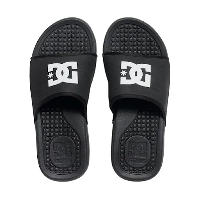 Di bagian atasnya terdapat ikon DC yang khas. Sedangkan di bagian atas sol terdapat pola yang unik. Warna hitam pada sandal ini membuat tampilannya sangat keren.